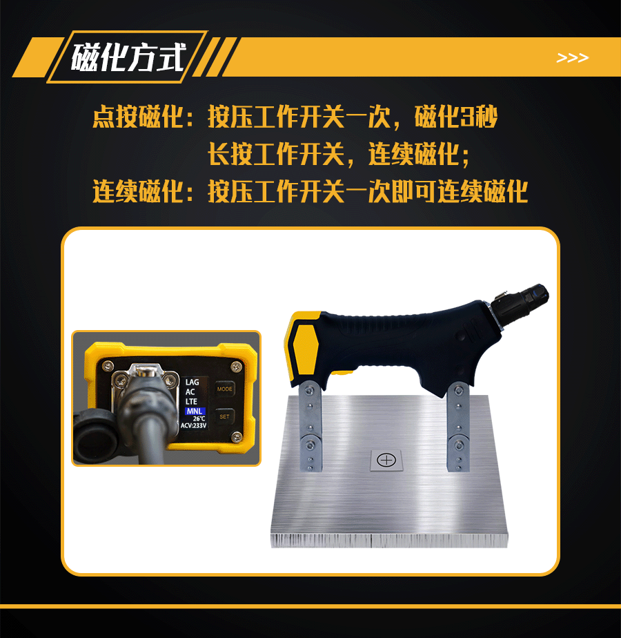 3、超短磁極腳工作模式,可提高磁場強(qiáng)度、靈敏度。