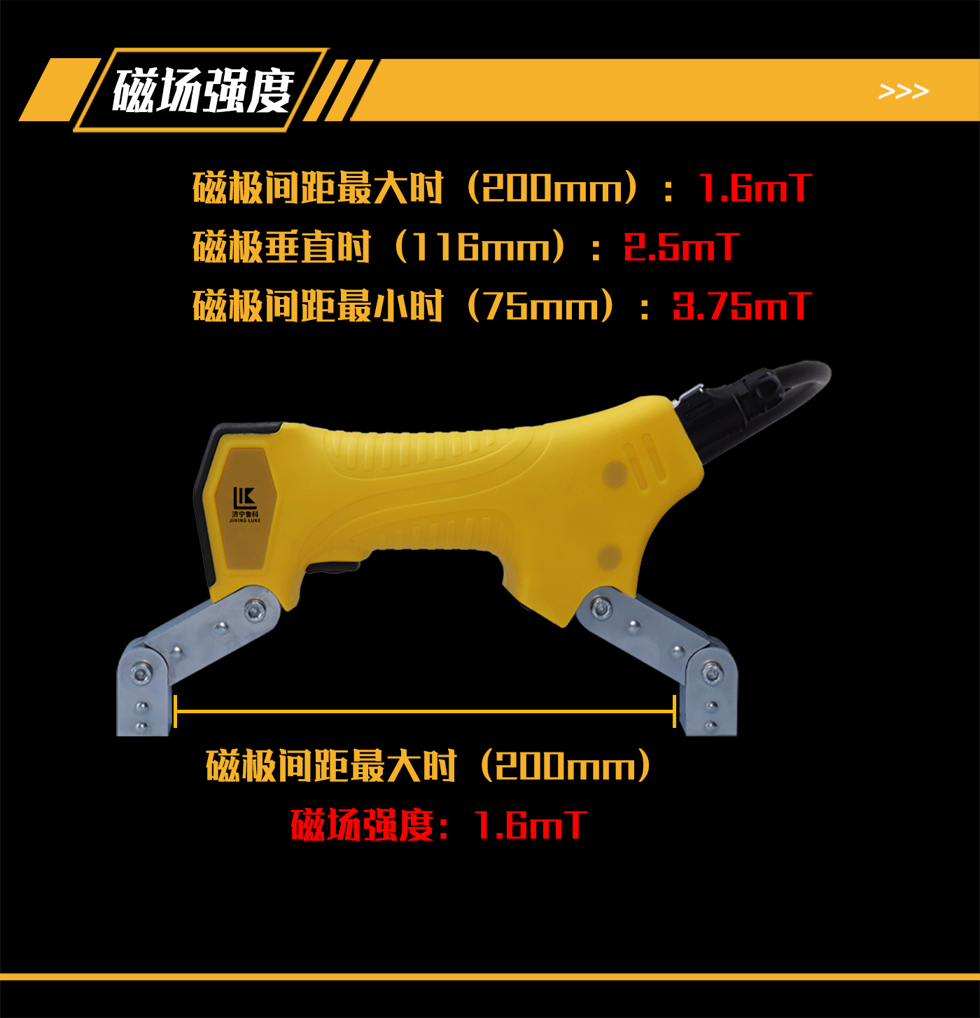 5、超短磁極腳工作模式,可提高磁場(chǎng)強(qiáng)度、靈敏度。