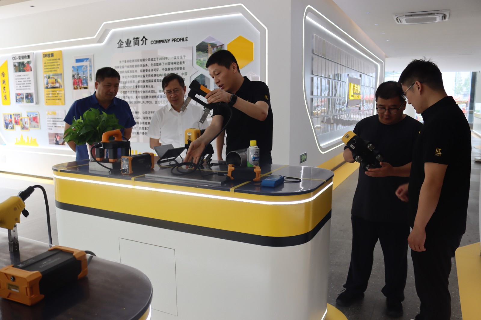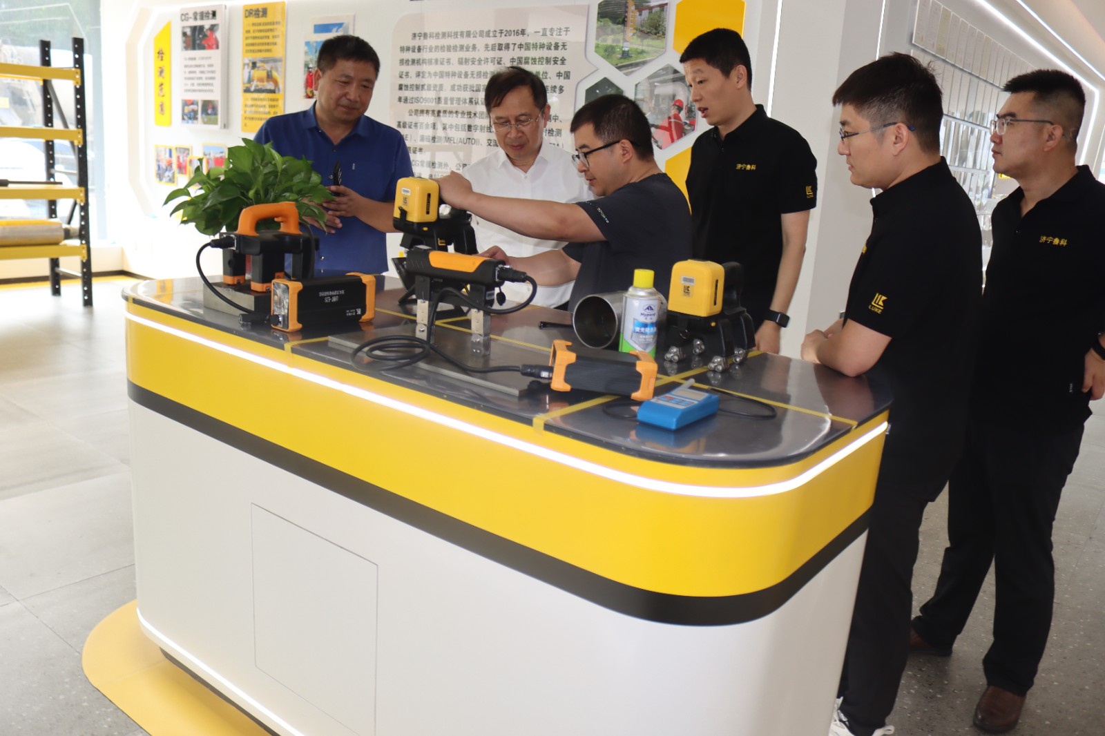 2024年7月18日江蘇省特種設(shè)備安全監(jiān)督檢驗研究院徐州分院領(lǐng)導(dǎo)一行蒞臨濟寧魯科參觀指導(dǎo),先后參觀了我公司的展廳、綜合辦公樓、研發(fā)生產(chǎn)中心,詳細了解了我公司的便攜式磁粉探傷儀、ACFM交流電磁場檢測儀、檢測爬行機器人等產(chǎn)品的研發(fā)、生產(chǎn)過程,對我公司表示高度認可,同時對公司產(chǎn)品表現(xiàn)了濃厚的興趣。