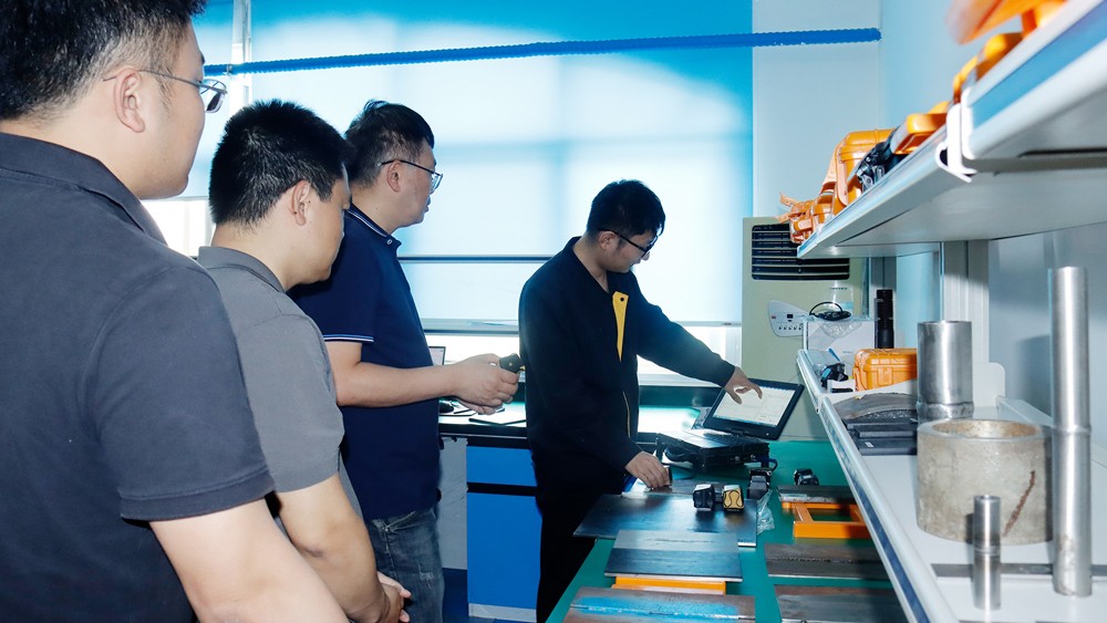 隨后我公司薛建祥總經(jīng)理陪同陳副院長(zhǎng)一行參觀我公司綜合辦公樓、研發(fā)生產(chǎn)中心、埋地管道實(shí)訓(xùn)基地、工程公司辦公樓,詳細(xì)了解了我公司在便攜磁粉探傷儀、ACFM交流電磁場(chǎng)檢測(cè)儀、腐蝕電磁測(cè)厚機(jī)器人等產(chǎn)品的研發(fā)、生產(chǎn)過程,對(duì)我公司在產(chǎn)品研發(fā)方面的工作表示認(rèn)可,并規(guī)劃了雙方要下一步交流合作的方向,對(duì)我司子公司工程公司在埋地鋼制管道及PE管道的取得的檢測(cè)成績(jī)給予贊賞。