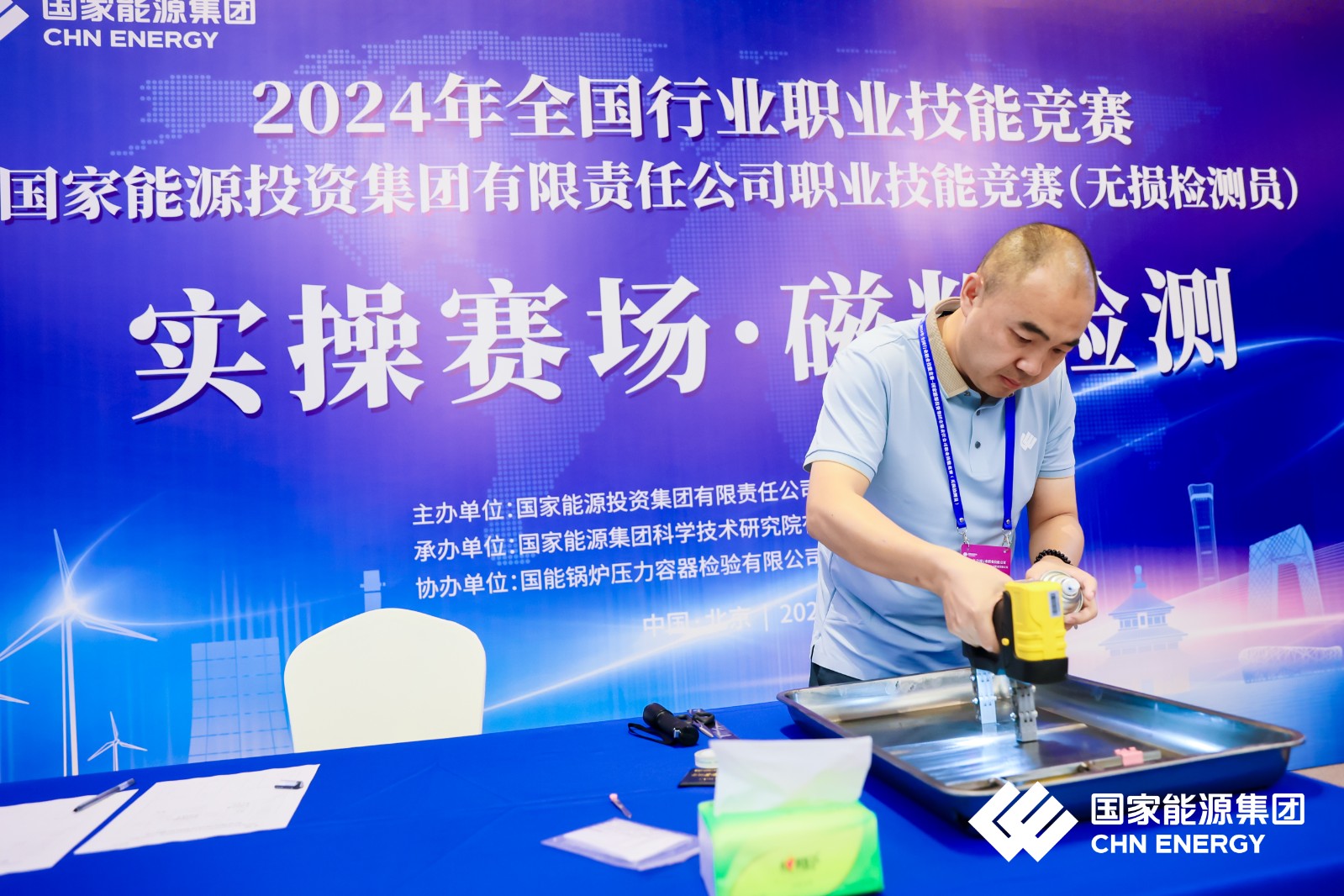 濟(jì)寧魯科助力國家能源集團(tuán)2024年全國行業(yè)職業(yè)技能競賽,國家能源投資集團(tuán)有限公司職業(yè)技能競賽(無損檢測員)實操賽場 ?磁粉檢測。