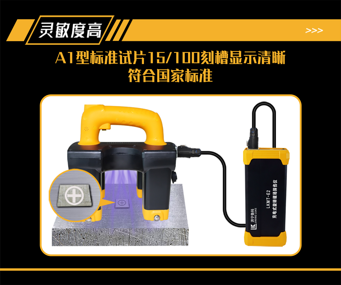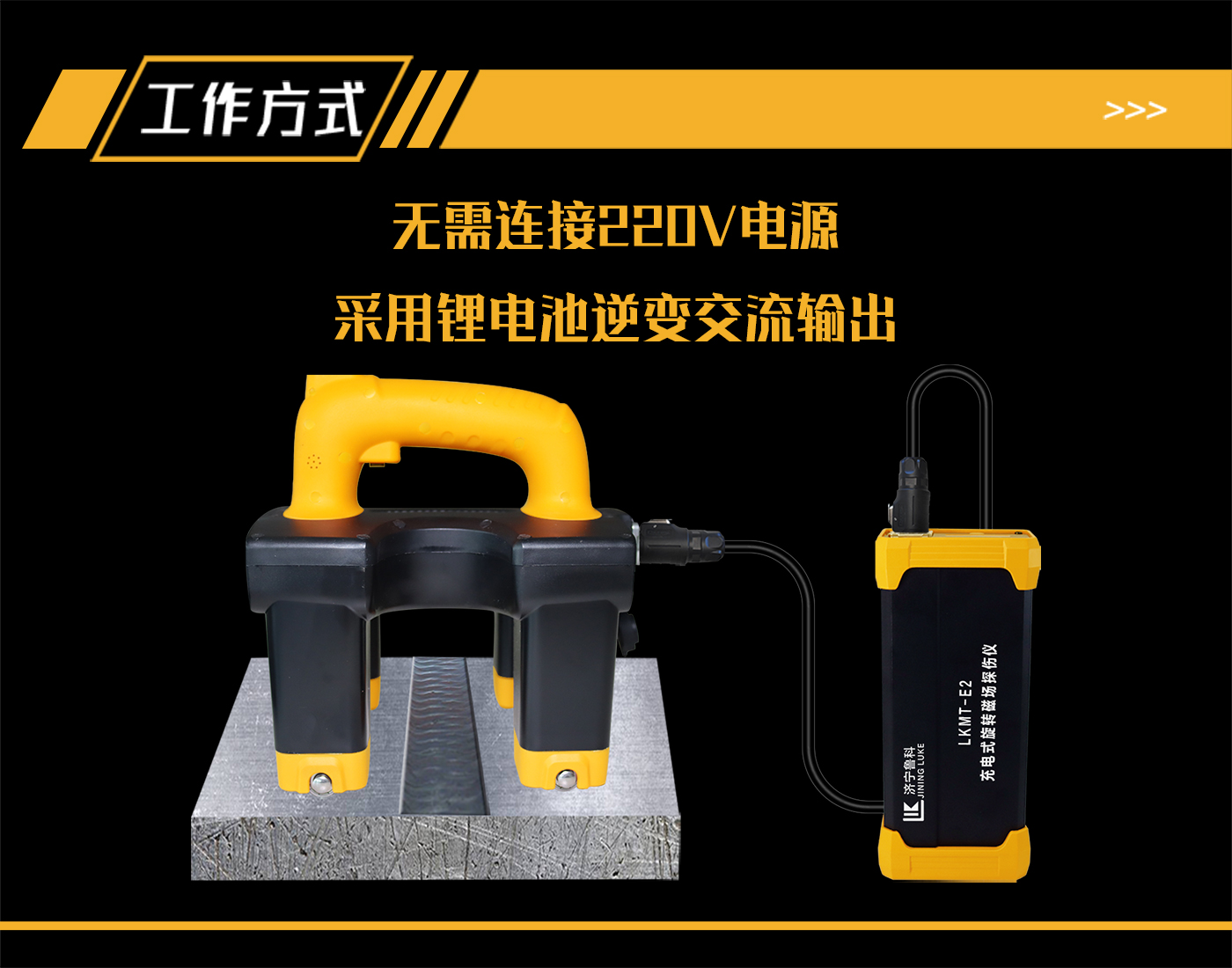 1、LKMT-E2寬焊縫旋轉(zhuǎn)磁場(chǎng)探傷儀,采用鋰電池電源供電,無(wú)需外接110V或220V電源即可產(chǎn)生交流旋轉(zhuǎn)磁場(chǎng)進(jìn)行探傷;