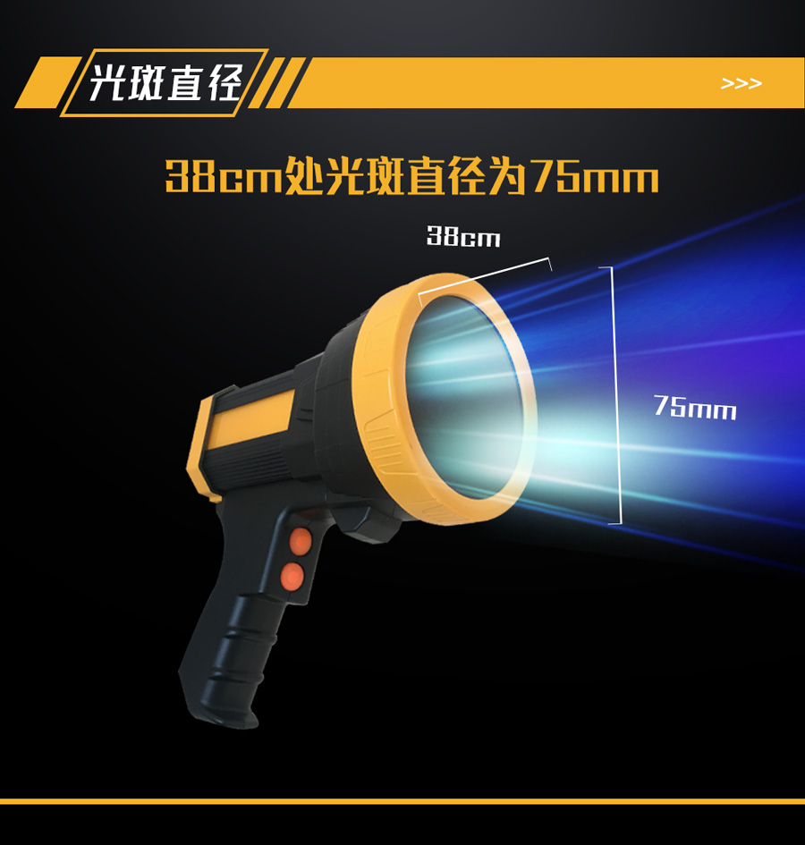 4、光斑直徑,38cm處光斑直徑為75mm;