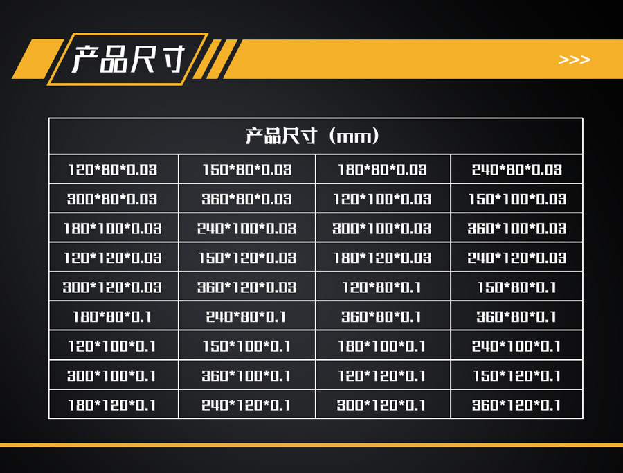 (2)300mm*80mm*0.03mm;