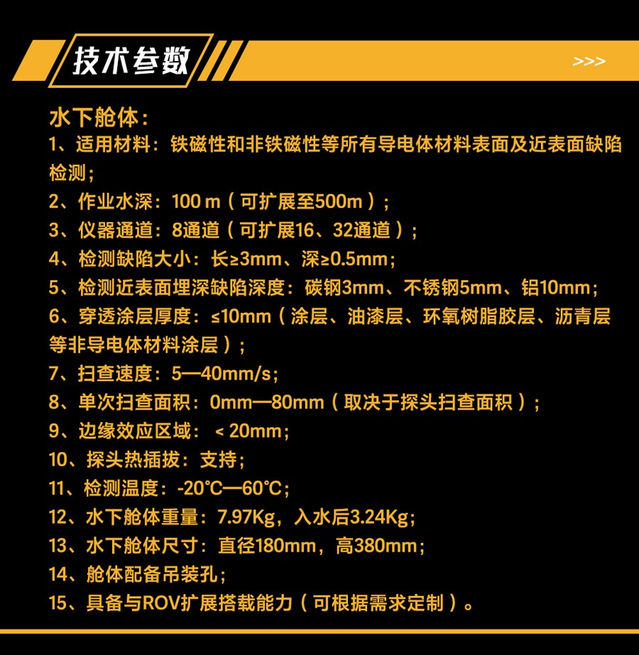 3、可檢測表面 350℃高溫中的非疲勞裂紋;可用于水下500m 深度結(jié)構(gòu)缺陷檢測;
