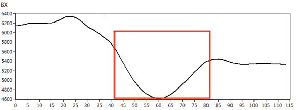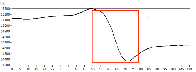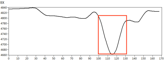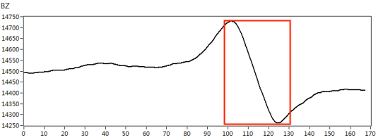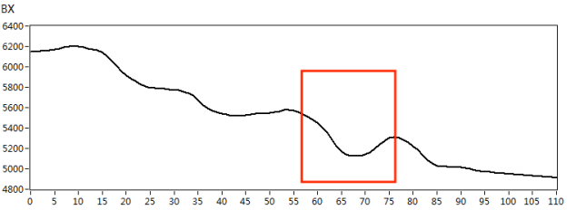 我們根據(jù)實際檢測對象的材質(zhì),制作了420*180mm規(guī)格的碳鋼材質(zhì)小接管管座試塊,試塊上角焊縫位置處分別有長度*深度為10mm*3mm、5mm*2mm的人工刻槽作為模擬缺陷,如下圖3所示。采用X1-LP-10型筆式探頭,首先在功能測試試塊上對交流電磁場檢測系統(tǒng)的綜合性能進(jìn)行核查,得到典型缺陷的特征信號,如圖4所示。然后再對小接管管座試塊進(jìn)行缺陷掃查,得到以下缺陷掃查圖像,檢測圖像如圖5、圖6所示。