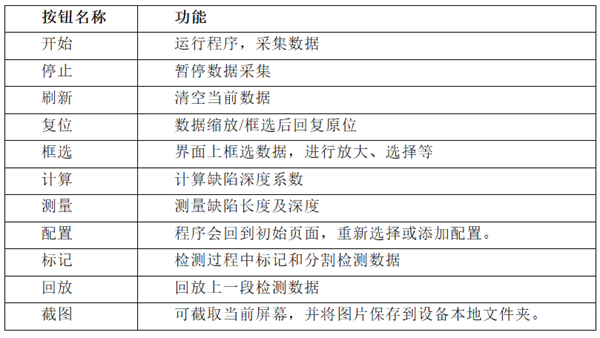 主頁界面如圖所示,最上層為狀態(tài)欄,顯示儀器電量、缺陷深度、界面顯示按鈕等。