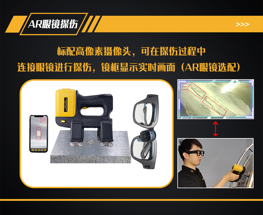 9、探頭內(nèi)部裝有500萬像素?cái)z像頭,手機(jī)、平板電腦或AR眼鏡等手持終端安裝APP軟件,通過Wi-Fi與探頭鏈接,手持終端實(shí)時(shí)顯示探傷狀態(tài)。