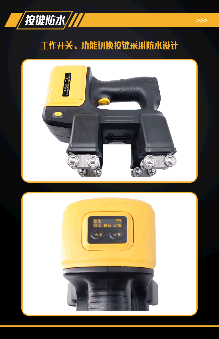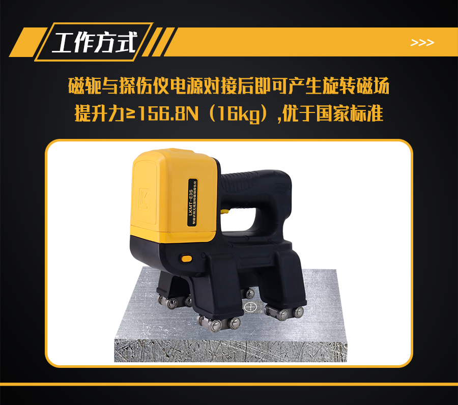 1、LKMT-E3S一體式旋轉(zhuǎn)磁場(chǎng)探傷儀,探頭與鋰電池一體式設(shè)計(jì),無需使用線鏈接。